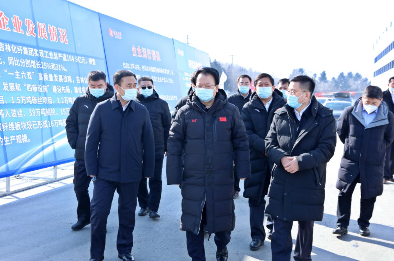 2月15日,省委書記景俊海在省領(lǐng)導(dǎo)李偉、李國強(qiáng),市領(lǐng)導(dǎo)王吉的陪同下,到集團(tuán)公司6萬噸碳纖維項目現(xiàn)場實地調(diào)研,宋德武董事長參加調(diào)研并匯報了公司碳纖維產(chǎn)業(yè)鏈項目推進(jìn)情況。景俊海鼓勵吉林化纖要強(qiáng)化科技創(chuàng)新、搶抓市場機(jī)遇、加快項目建設(shè)、持續(xù)釋放潛能,早日跨越產(chǎn)值500億元大關(guān)。下一步,集團(tuán)公司將繼續(xù)加快推動碳纖維產(chǎn)業(yè)發(fā)展,為推動吉林全面振興取得新突破貢獻(xiàn)更大力量。